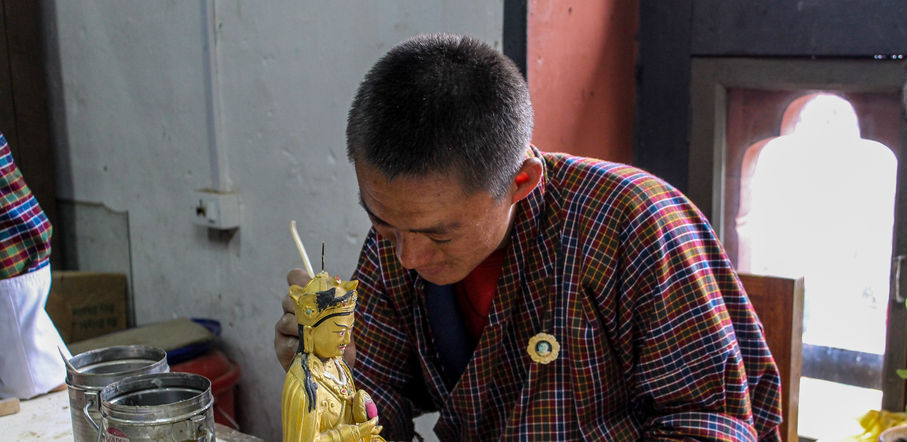 Set up by the government in 1971, Zorig Chusum translates to thirteen crafts. The crafts are unique doorways of understanding the religious and cultural roots of the land. The numerous patterns, designs and colours are the messengers of the rich heritage. Creativity is nurtured while sharpening the perspective of the students. The sculptures spark a distinction of Bhutan’s extraordinary identity as a kingdom of peace and harmony. These handicrafts adorn houses, dzongs (administrative centre) and monasteries as a mark of appreciation and pride of belonging to the same origins.